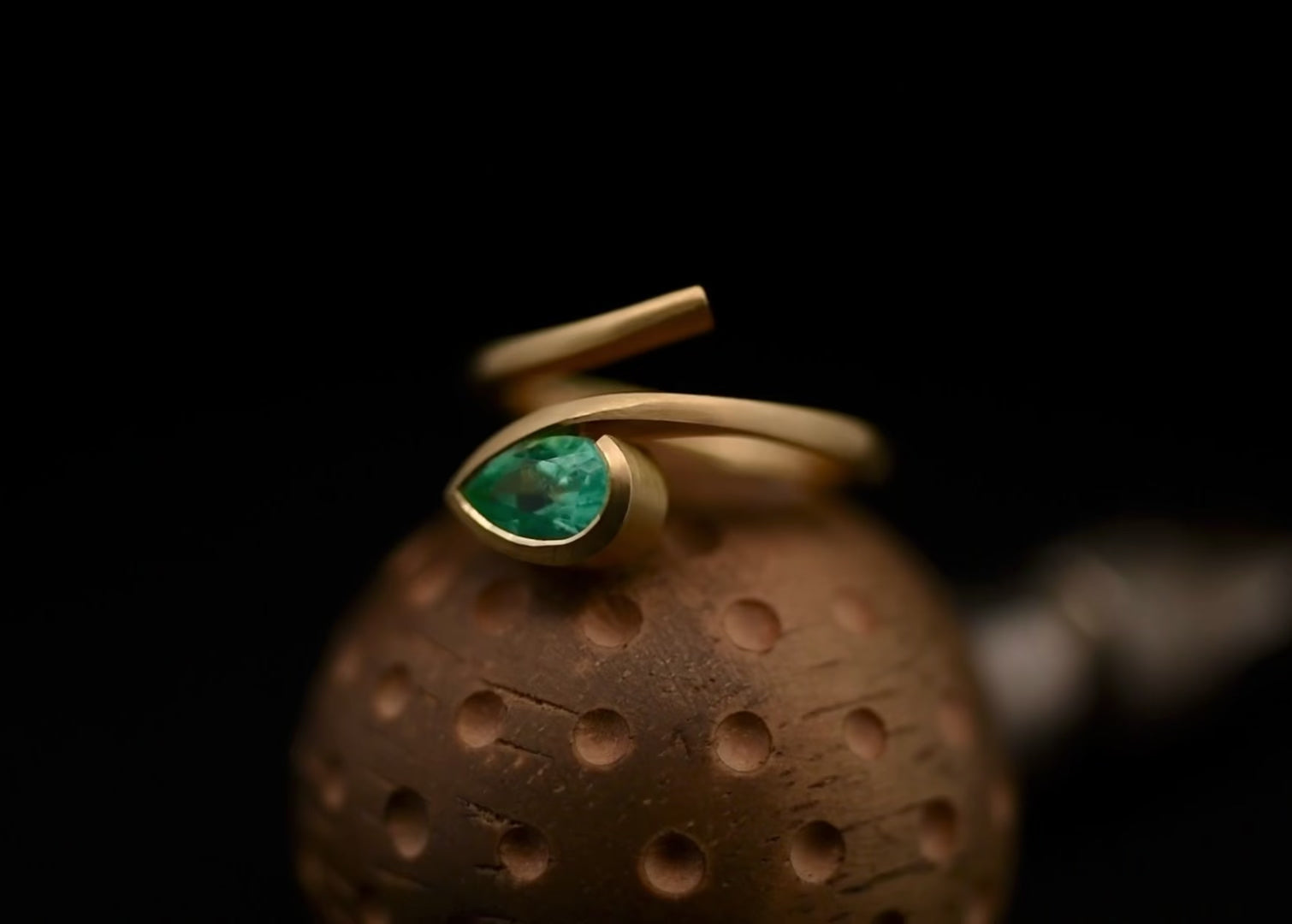 Sculpted yellow gold 4 claw emerald ring