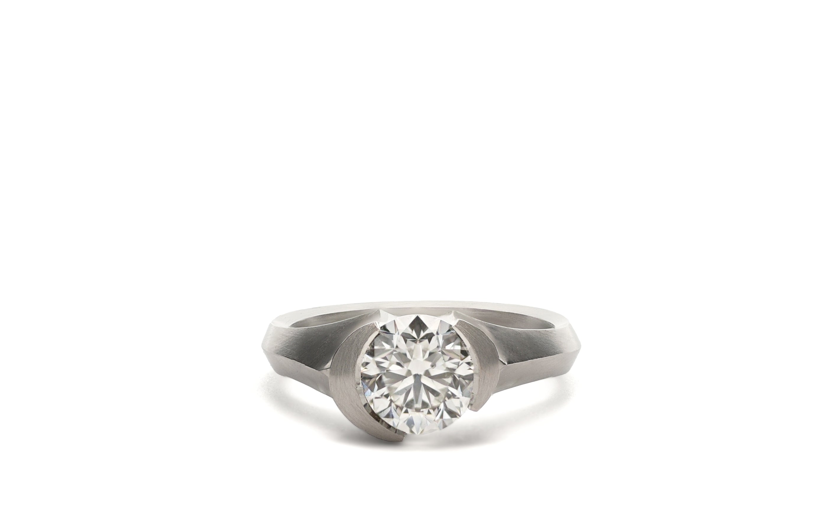 Hand Carved Asymmetric platinum and white diamond Arris Ring