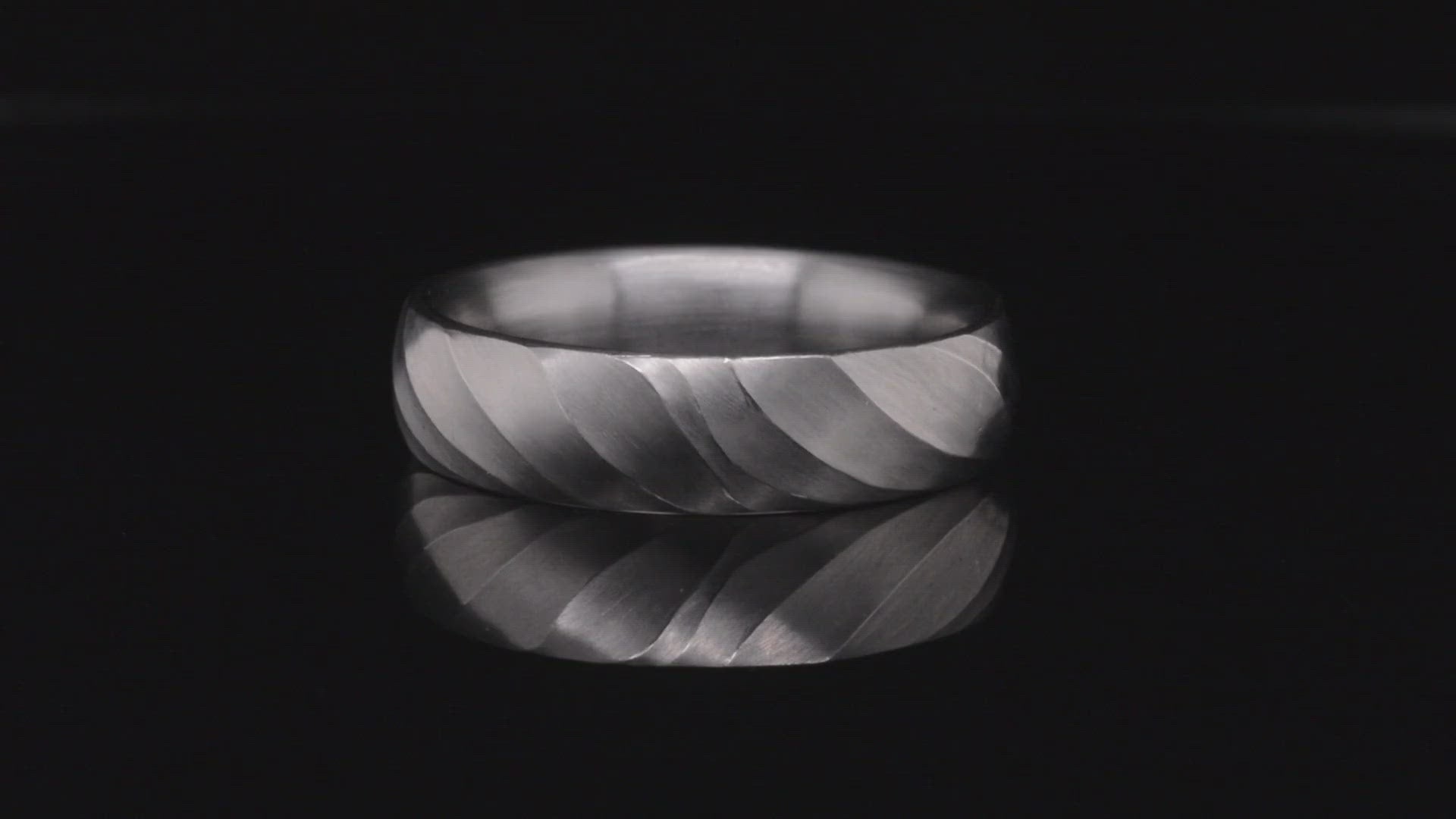The Aeolian Carved Men's Wedding Band is truly a unique design. The unusual chunky wedding ring is a perfect modern and linear wedding ring for men who want something unconventional. Inspired by Aeolus, the Greek god of the winds, the term aeolian refers to forms arising from the wind. The shallow hand-carved ridges and recesses of the band resemble gusts of wind so common in Ireland and the UK.