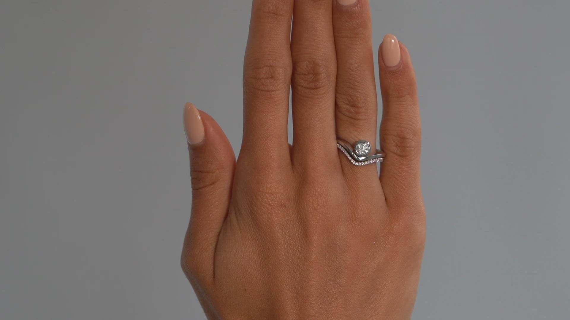 A matching fitted wedding band for our Balance engagement ring. Hand forged to follow to soft curves of the engagement ring. The band is half set with diamonds, highlighting the curves of the ring and accentuating the engagement ring's center stone.