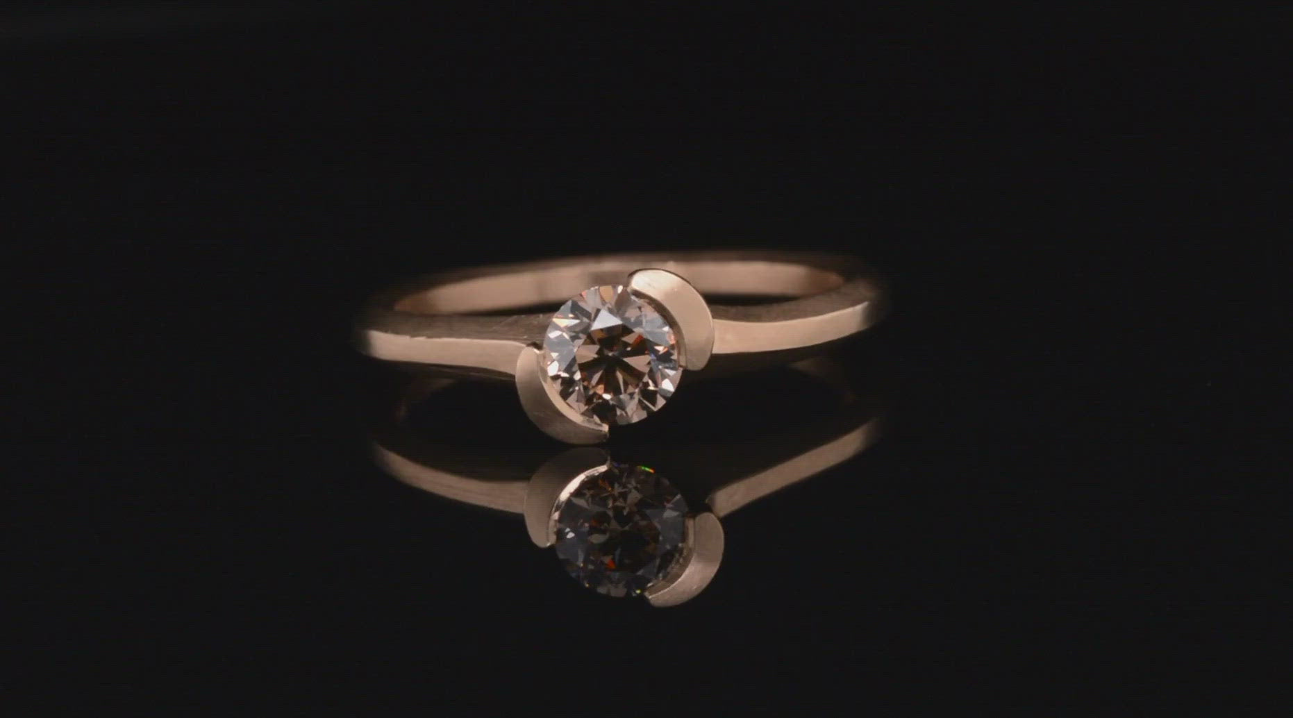 Hand carved asymmetrical rose gold Arris ring with cognac diamond