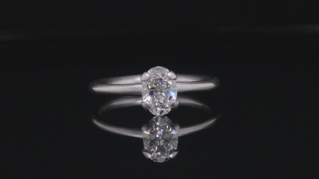Oval diamond and platinum sculpted 4 claw engagement ring