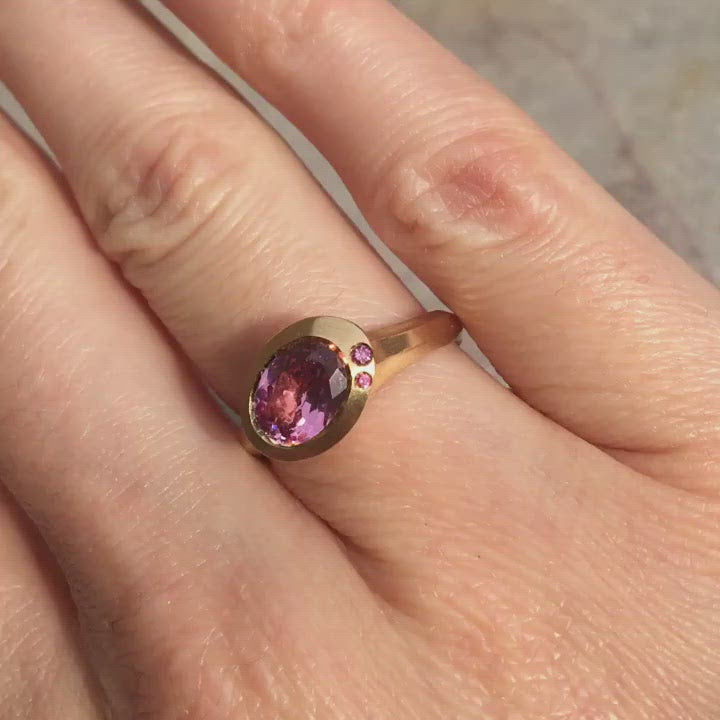 Rose gold Arris ring with oval pink spinel and pink diamonds