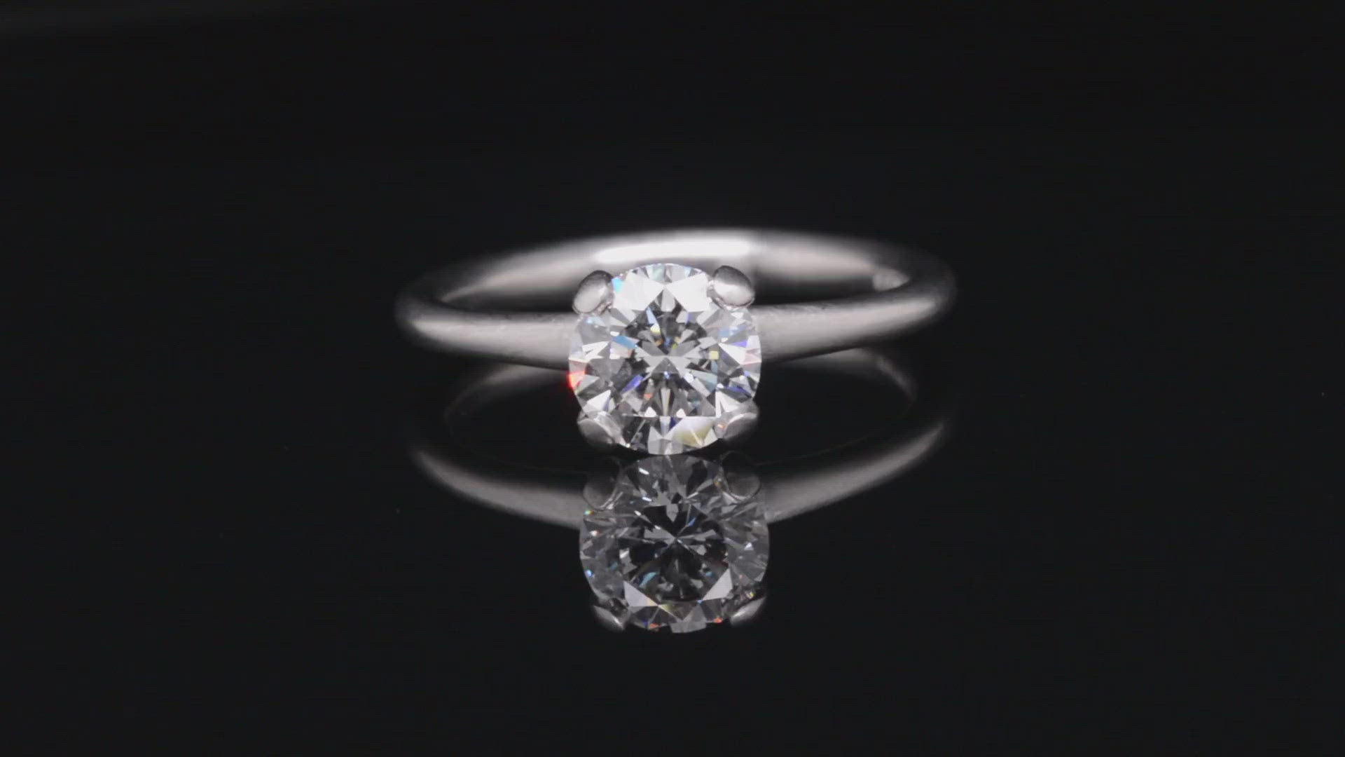 A sculpted variation on the classic four claw solitaire engagement ring. Gently curved and sculpted claws give this diamond engagement ring an organic quality and bring a fresh, modern feel to a classic design. Seen here in satin-finished platinum, set with a round GIA certified brilliant white diamond.