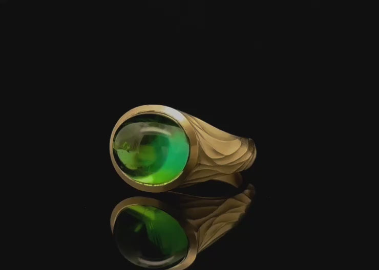 18ct Yellow Gold Green Tourmaline Cabochon Arris Ring